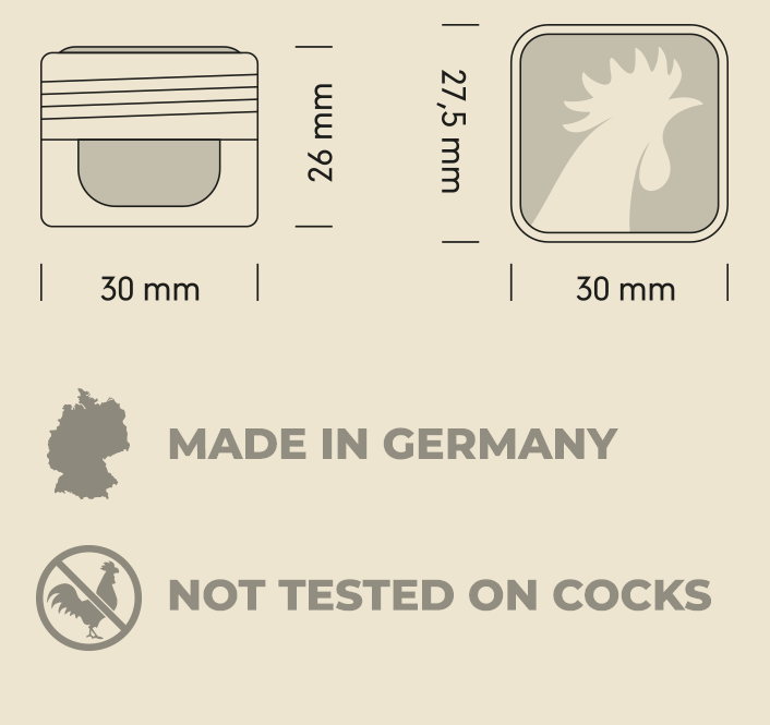Original Coq Butter kommt im praktischen Plexiglas Cube, der sowohl in der Hosentasche als auch im Badezimmer eine gute Figur macht.